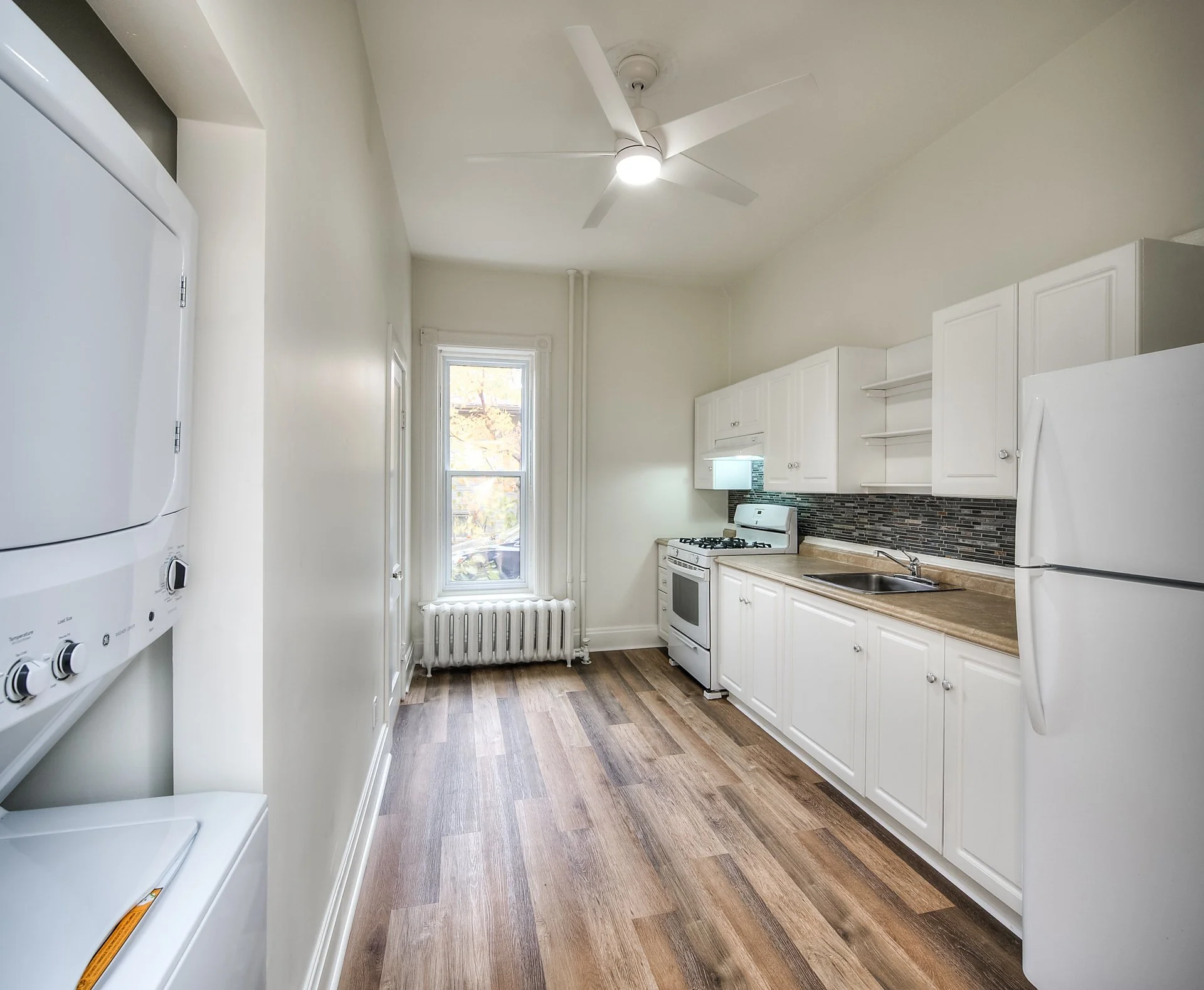 Newly renovated and freshly styled with modern materials while still incorporating the beautiful century home character. This large 645 square foot, One bedroom apartment in North Preston is ready for immediate occupancy! The space is bright and airy with an expansive bedroom, renovated bathroom and a covered porch for sweet summer nights and relaxation with friends and family. The tall (almost) 10ft ceilings provide a luxurious feel that you don’t get from a typical apartment or condo. This location is just steps away from Laurence St Park, groceries, the shops and restaurants of King Street, the LCBO, and offers quick access to the 401 – just 10 minutes away on Highway 8. Ensuite laundry is featured (no more trips to the laundromat!), and there’s a covered parking spot. Heat and summer maintenance included! Email for more information